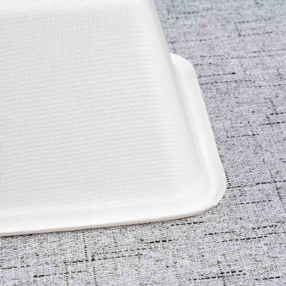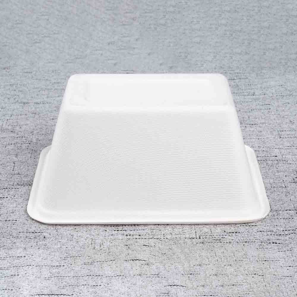The 1000ml square lunch box is made from 100% natural sugarcane fiber, offering a biodegradable and compostable alternative to plastic containers. With its large capacity and stackable square design, it is sturdy, lightweight, and ideal for family-size meals, combo sets, catering portions, and food delivery.