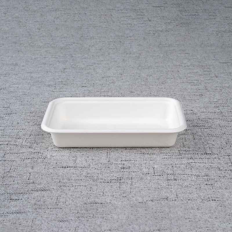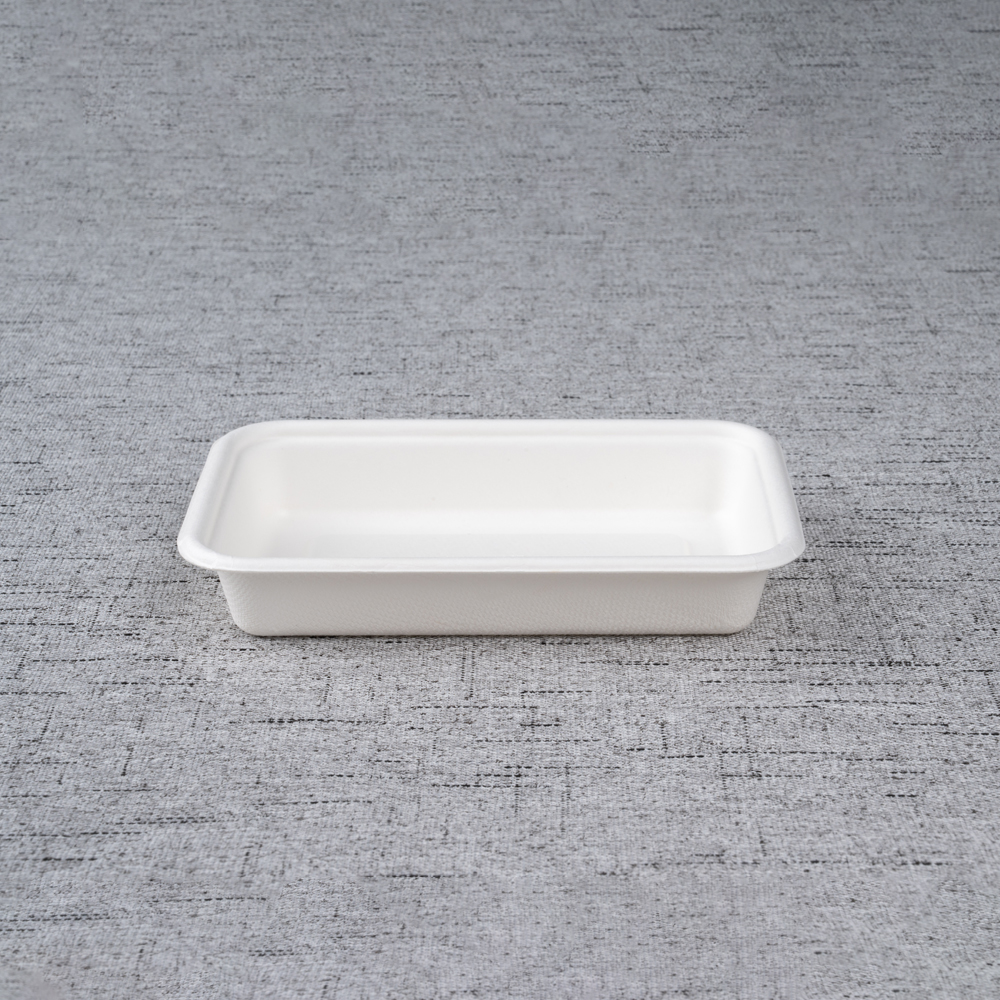 The 260ml rectangular lunch box is made from 100% natural sugarcane fiber, offering a sustainable and biodegradable alternative to plastic packaging. With its compact size, it is lightweight, sturdy, and compostable—perfect for sauces, dips, nuts, desserts, side dishes, and snack portions in restaurants, catering, and takeaway services.