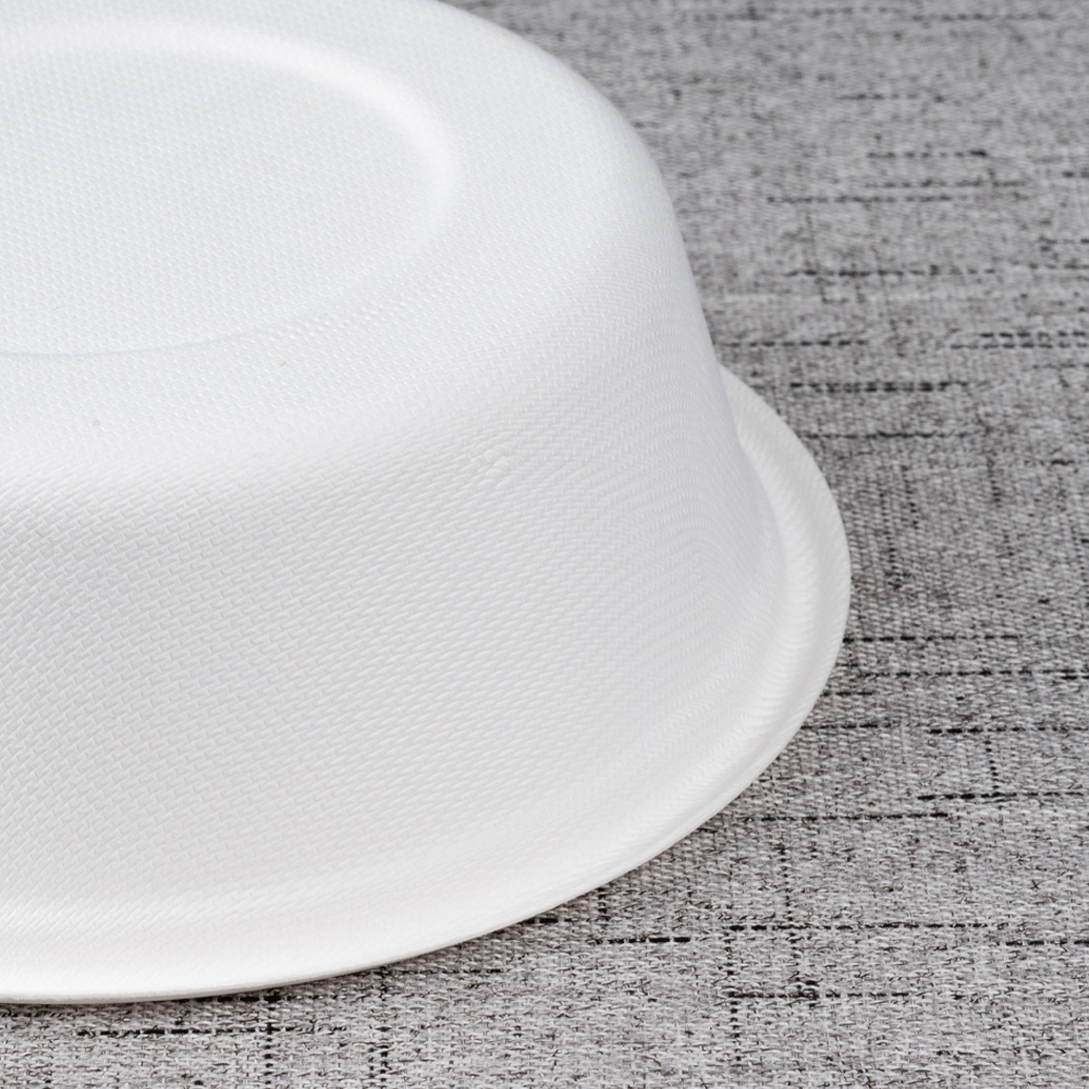 The 650ml Bagasse Bowl is made from 100% natural sugarcane fiber. It is biodegradable, compostable, and an eco-friendly alternative to plastic.