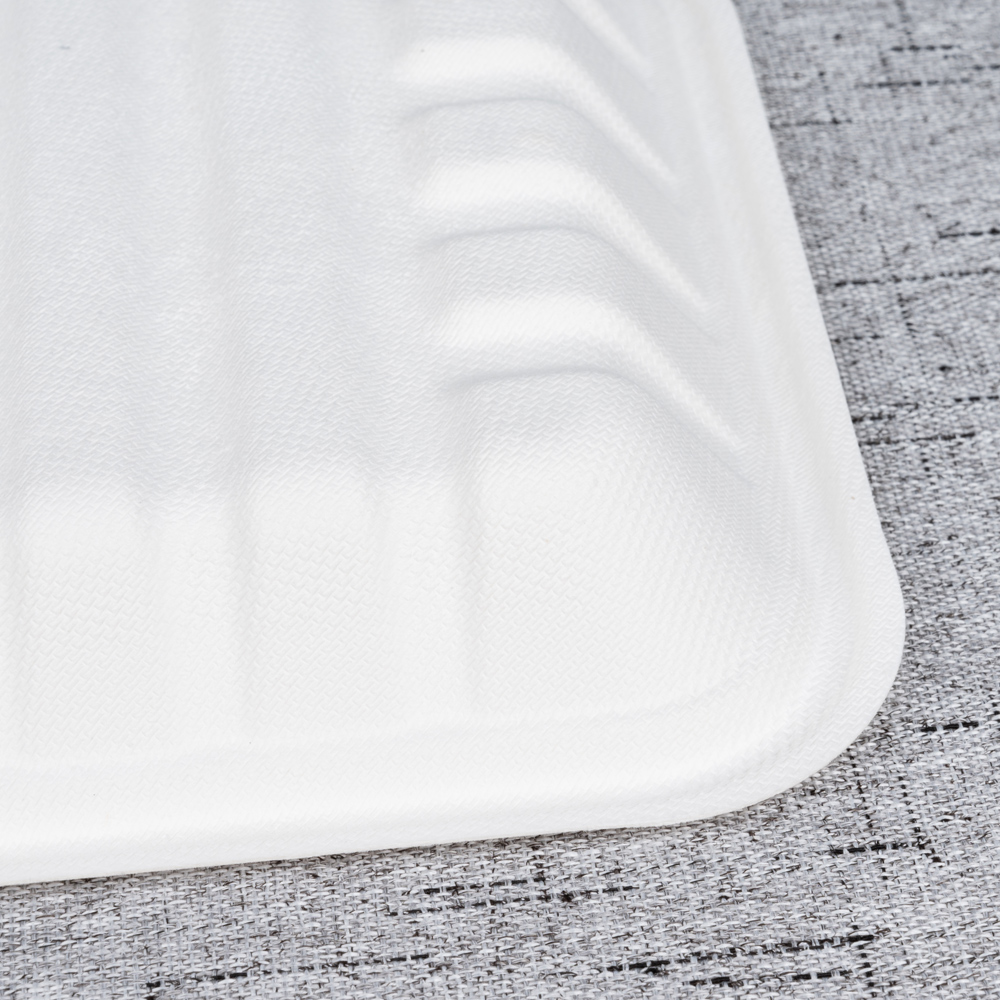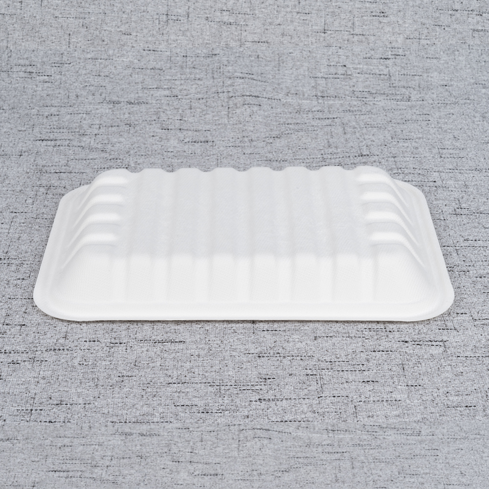Crafted from 100% bagasse, the T230 is a shallow, display-forward tray that balances capacity and visibility. Its 240 × 175 mm footprint with a low 27 mm wall is ideal for salads, sushi sets, pastry assortments, cheese & charcuterie tasters, and fresh fruit. A clean natural finish elevates chilled-shelf presentation, while oil/water resistance plus microwave-reheat and freezer safety support daily retail and deli operations. The smooth rim works with film overwraps and many heat-seal options (where equipment is available).