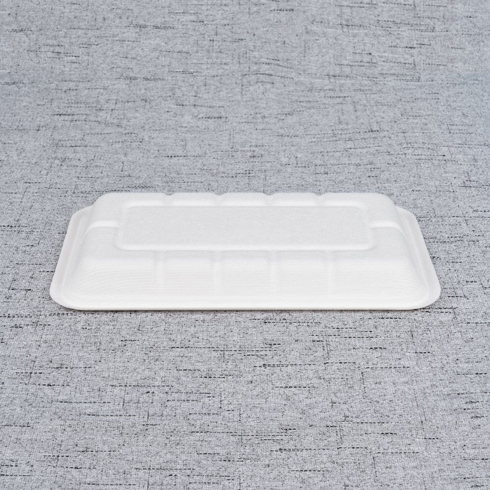 Made from 100% bagasse, the T3 tray is a sustainable alternative to plastic for longer-format foods. Its elongated 210 × 125 mm footprint with a practical 35 mm depth is ideal for sushi rows, eclairs and long pastries, fish fillets, charcuterie slices, wrap halves, and produce like asparagus. A clean, natural finish elevates chilled-shelf presentation, while oil- and water-resistant performance supports everyday retail and deli operations. Microwave-reheat and freezer safe, the T3 works seamlessly with common film overwraps, paper bands, and many heat-seal options (where equipment is available).