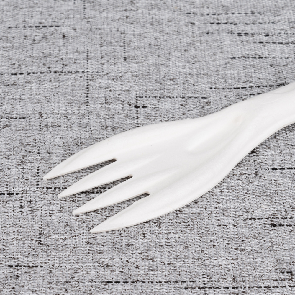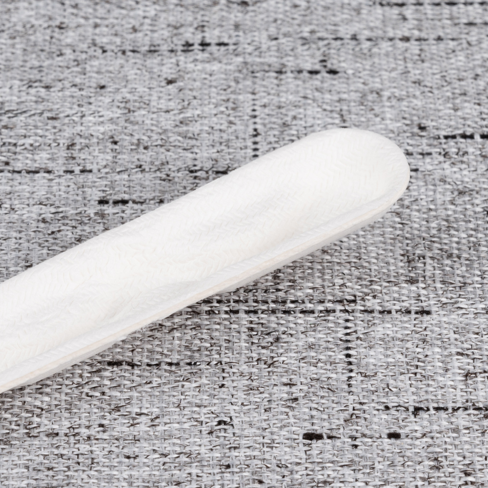 Molded from 100% bagasse fiber, this fork combines plant-based sustainability with a premium white appearance. The smooth, splinter-free finish and sturdy tines handle salads, pasta, rice bowls, pastries, and deli sides with ease. Taste-neutral and safe for hot or cold meals, it’s an elegant, reliable choice for cafés, restaurants, hotels, catering, and delivery programs that prefer a clean white table setting.