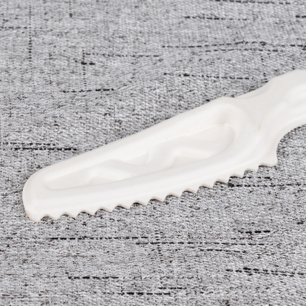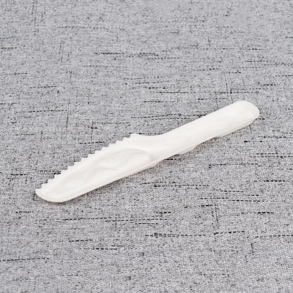 It’s molded from 100% bagasse (sugarcane fiber), providing a plastic-free, compostable alternative to conventional disposable knives.