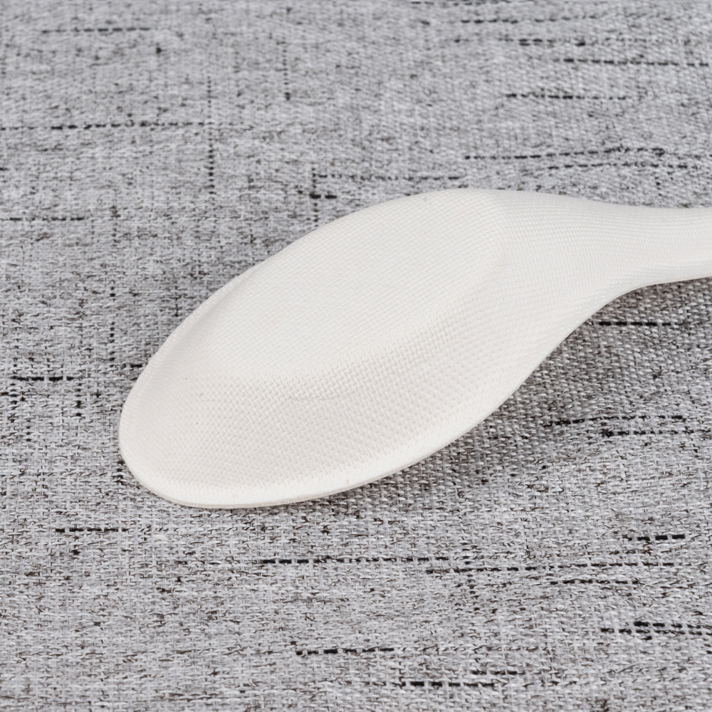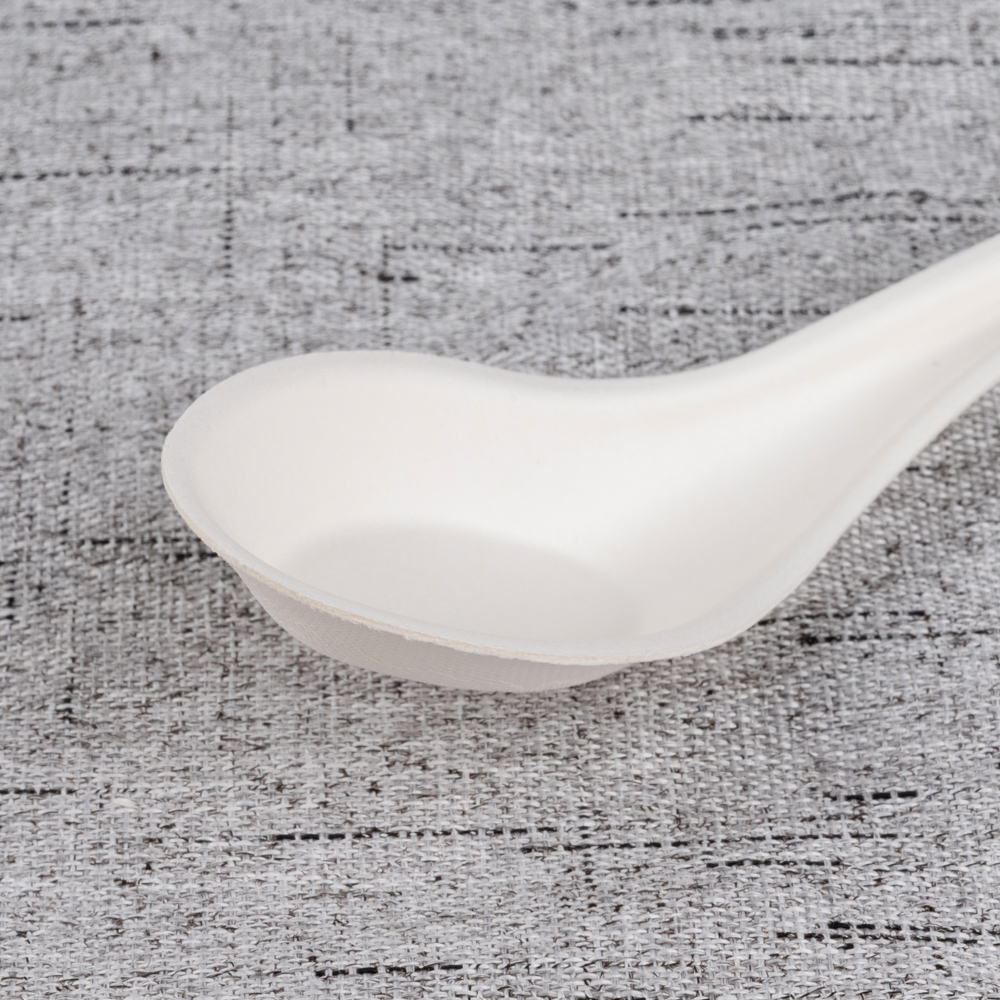 Molded from 100% bagasse fiber, this soup spoon combines plant-based sustainability with a premium white appearance. The deep, rounded bowl delivers a comfortable mouthfeel and better liquid hold for soups, broths, chowders, and congee, while the smooth, splinter-free rim protects lips. Taste-neutral and safe for hot or cold service, it’s ideal for restaurants, hotels, catering lines, and delivery programs seeking a photo-ready white utensil.