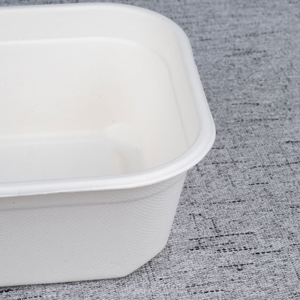 The 500ml Bagasse Lunch Box is made from 100% natural sugarcane fiber. It is biodegradable, compostable, and an eco-friendly alternative to plastic containers.