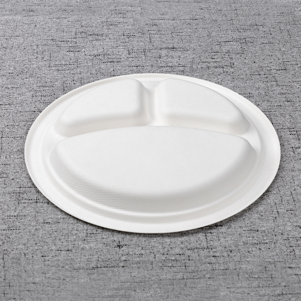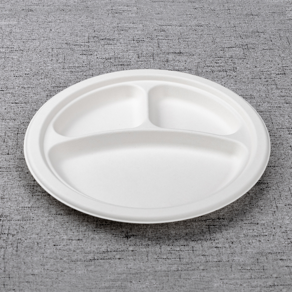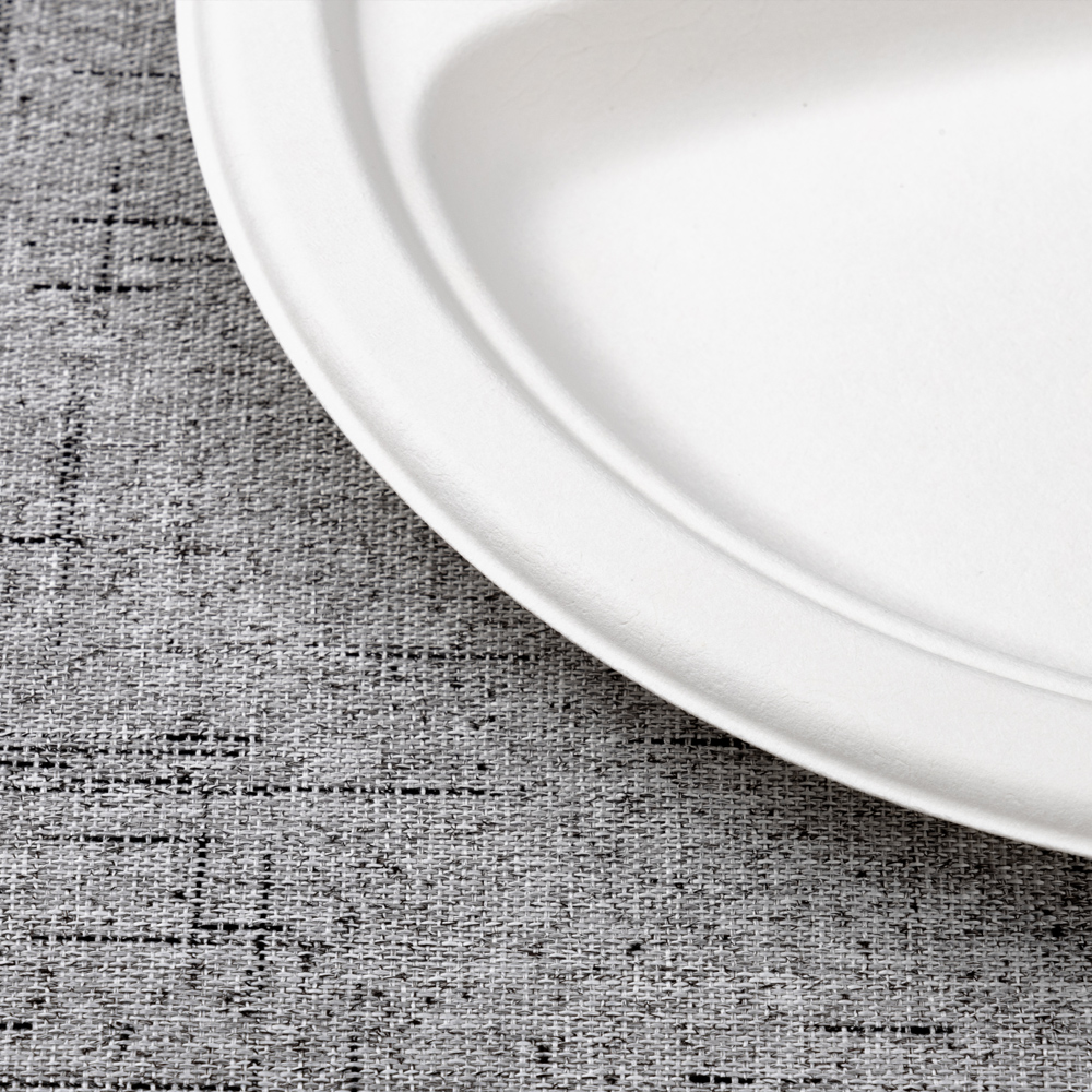 Molded from 100% bagasse fiber, this 10-inch round plate separates an entrée and two sides for clean presentation and portion control. The reinforced rim adds stiffness for confident carry at buffets and lines, while the smooth, taste-neutral surface handles hot or cold dishes. Tight nesting supports fast staging for canteens, catering, and delivery.
