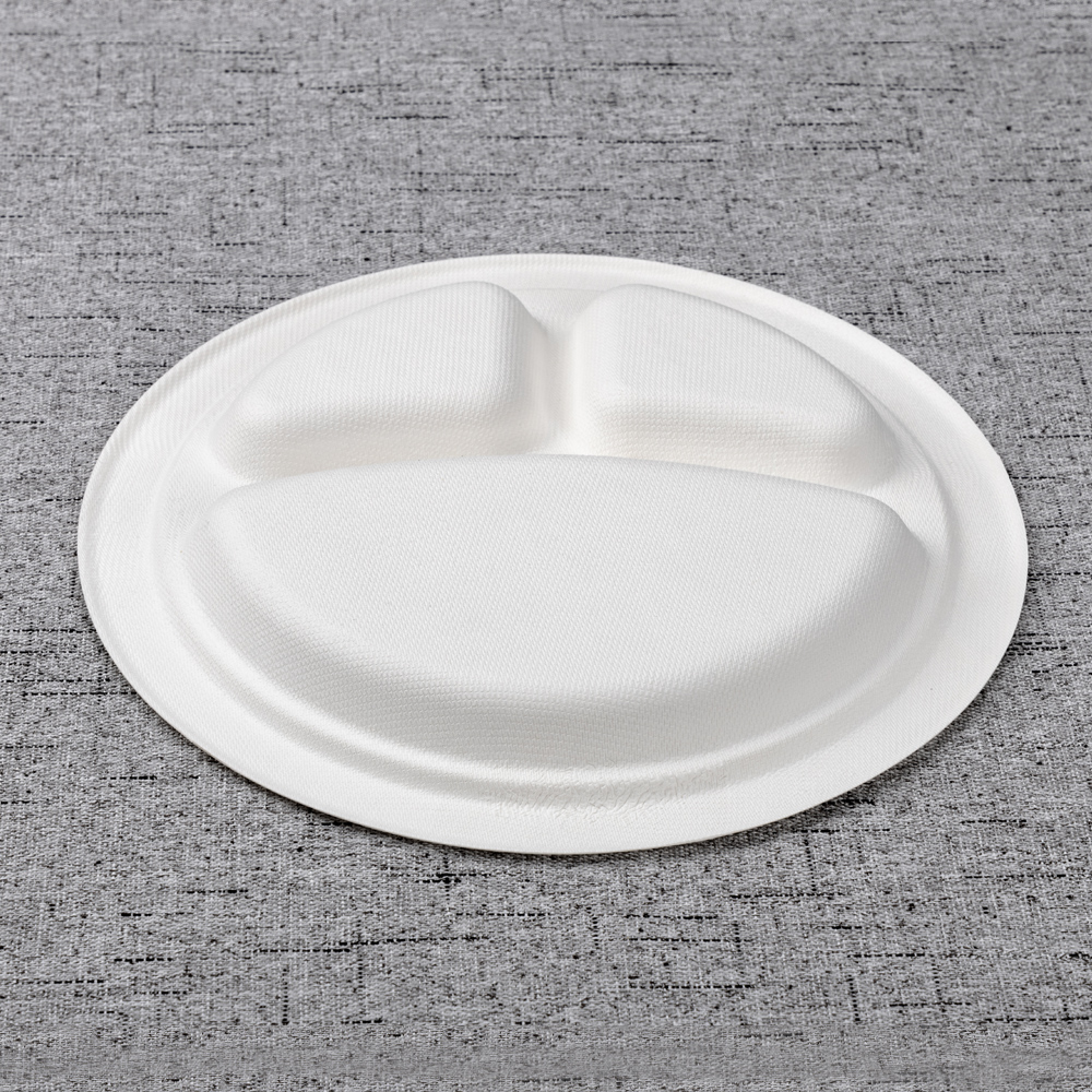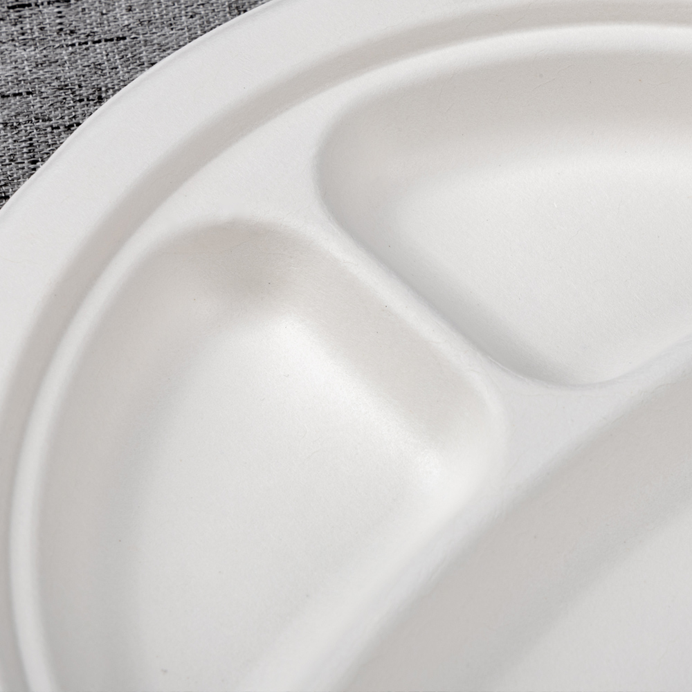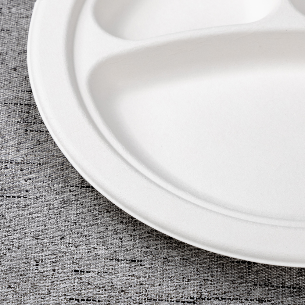 Molded from 100% bagasse fiber, this 9-inch round plate organizes an entrée and two sides without cross-contact. The reinforced rim adds stiffness for confident carry, while the smooth, taste-neutral surface handles hot or cold dishes. Tight nesting supports fast buffet lines, school canteens, and delivery programs.