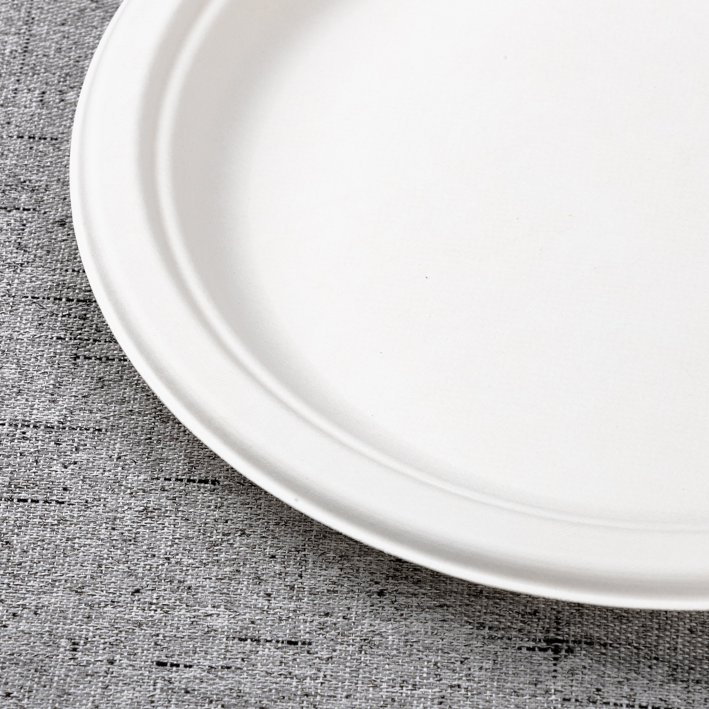 Molded from 100% bagasse fiber, this 9-inch plate is the standard size for adult meals—ideal for mains, entrée salads, and pasta/rice dishes. The reinforced beaded rim improves stiffness and carry confidence, while the smooth, taste-neutral surface suits hot or cold menus. Tight nesting supports fast lines in canteens, catering, and delivery.