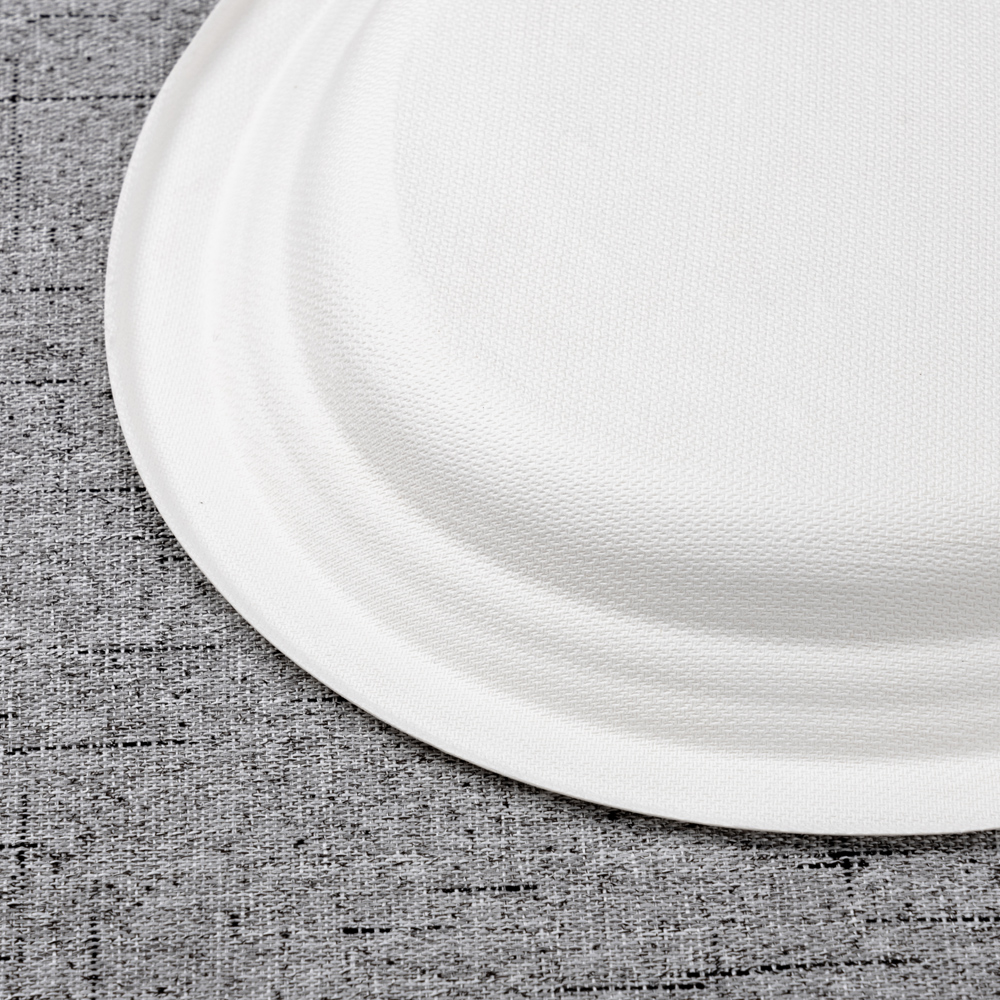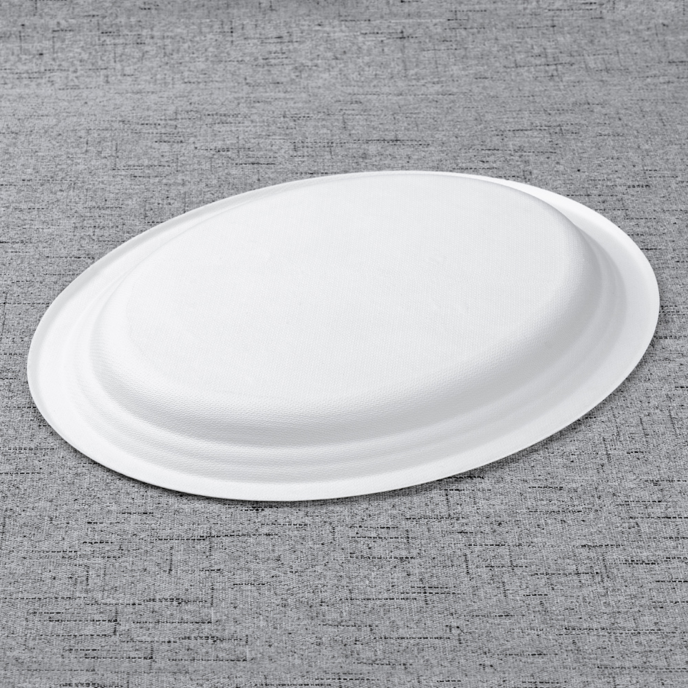 Molded from 100% bagasse fiber, this 320 × 255 × 20 mm oval plate provides a generous canvas for steaks, fillets, composed salads, and shared mains. The shallow 20 mm rim offers sauce control without hindering cutlery, while the reinforced edge improves stiffness for confident service. Taste-neutral, tightly nesting, and back-of-house friendly, it suits restaurants, canteens, catering, and retail programs.